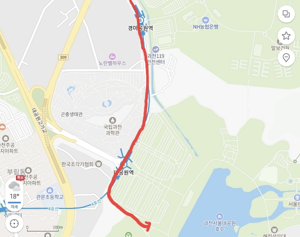 대공원역을 거쳐 진입하는 경로로 안내해 줍니다.