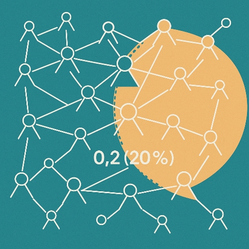 중복률은 나도 알고 지인도 아는 사람이 겹칠 경우가 있기 때문에 이 만큼의 사람 수를 빼는 것인데, 많은 연구나 모델링에서 20~50% 사이 값을 다양하고 사용하고 있습니다. 그중 0.2는 두 사람이 모두 아는 지인이 그나마 덜 겹칠 경우를 상정한 숫자이고, 중복률이 높을수록 사회 연결망이 조밀해져서 서로 알고 있는 사람이 동일할 경우가 많아짐을 의미합니다.